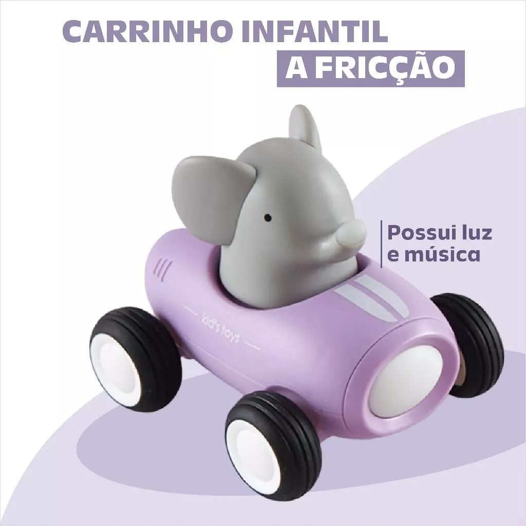 Carrinho a Fricção Fofinho para Crianças. Possui design arredondado minimalista, com cores suaves. Conta com uma luz que acende no animalzinho, tornando-o ainda mais bonito e divertido para brincar.
