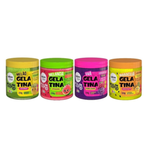 Combo Gelatinas de Frutas O kit conta com 4 gelatinas com cheirinho de frutas, formando o combo perfeito para a finalização dos cabelos dos pequenos. Juntos são especialmente formulados para cuidar dos fios delicados, oferecendo hidratação, definição e controle do frizz.